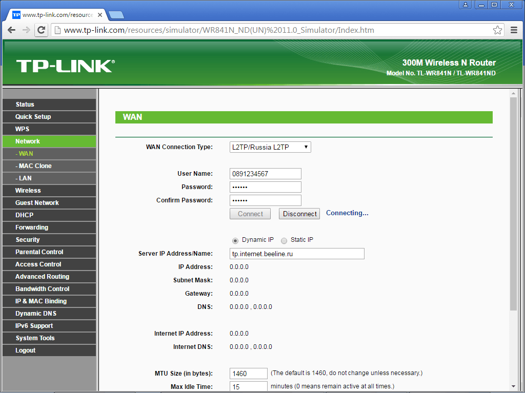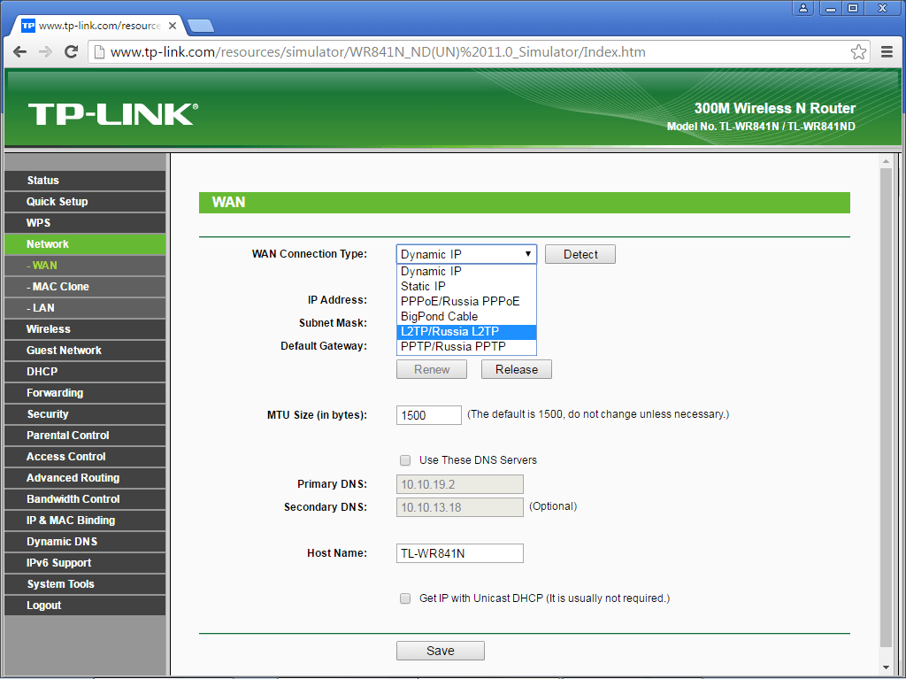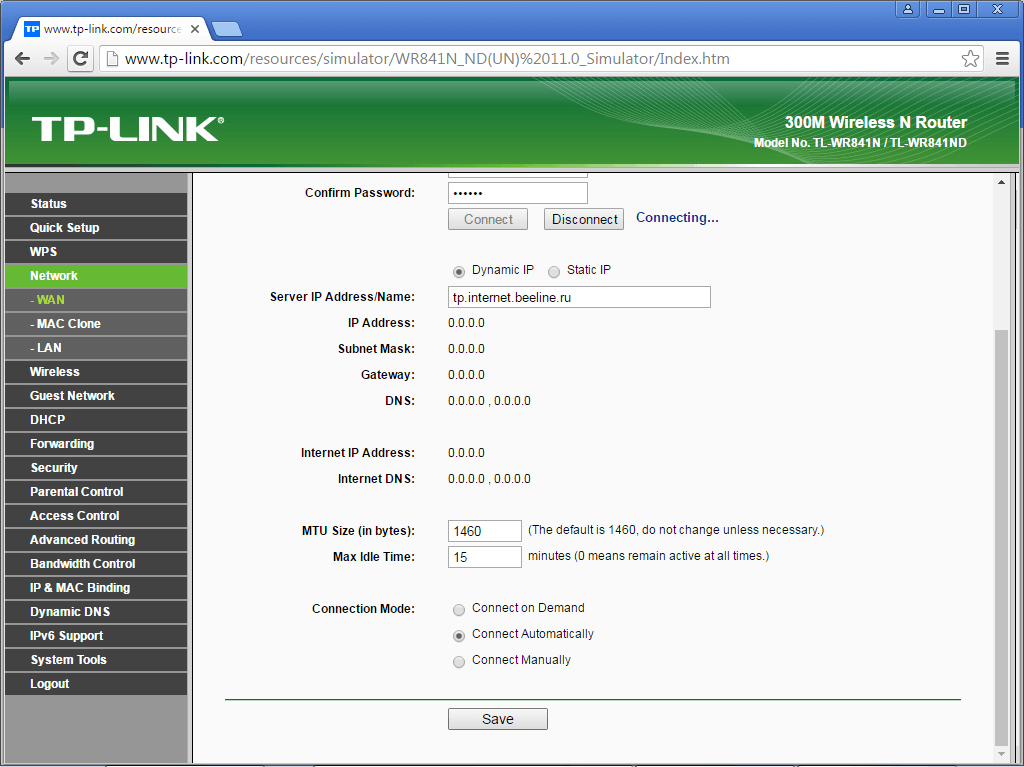 Отстройка TP-Link WR-841ND на первых порах мало отличается от модели Asus.