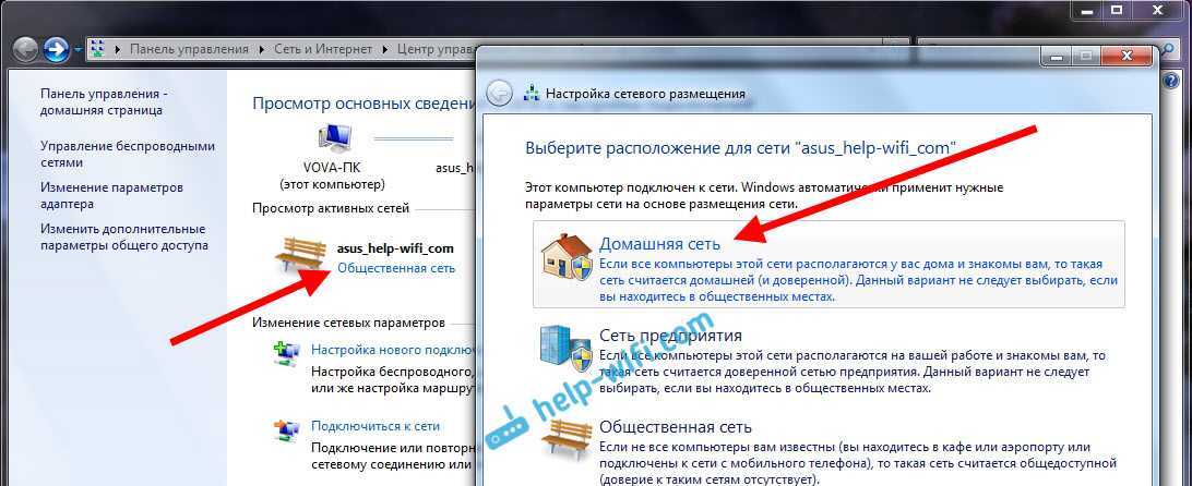 Важно, что бы оно было со статусом Домашняя сеть. Если у вас как у меня на скриншоте Общественная сеть, то нажмите на эту ссылку, и выберите Домашняя сеть