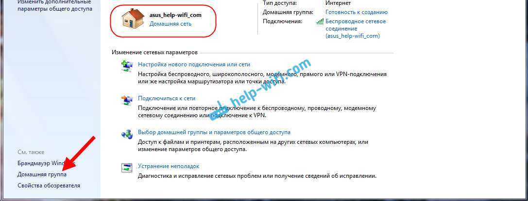 Закройте окно с выбором размещения сети. Теперь, наше подключение со статусом «Домашняя сеть». Перейдите в раздел Домашняя группа.