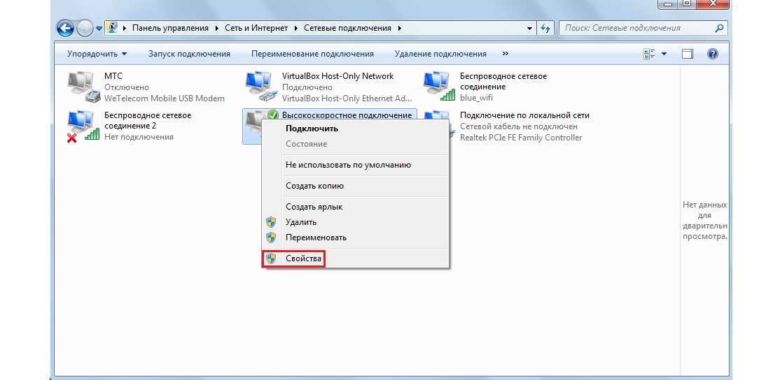 Кликаем правой кнопкой мыши на своем подключении и выбираем пункт «Свойства».