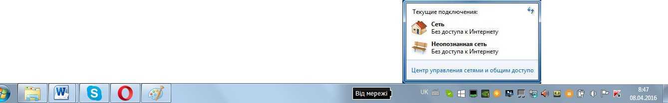 Сообщение «неопознанная сеть» при попытке подключения к интернету