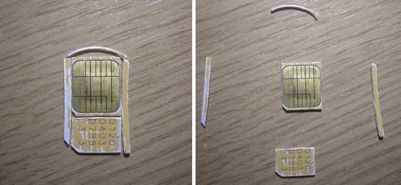 Некоторые умельцы при помощи бумаги и двустороннего скотча добиваются нужного размера карточки в домашних условиях, обрезая правильные габариты бумажного шаблона или, подкладывая небольшой кусочек бумаги для плотного прижимания симки к контактам в слоте.