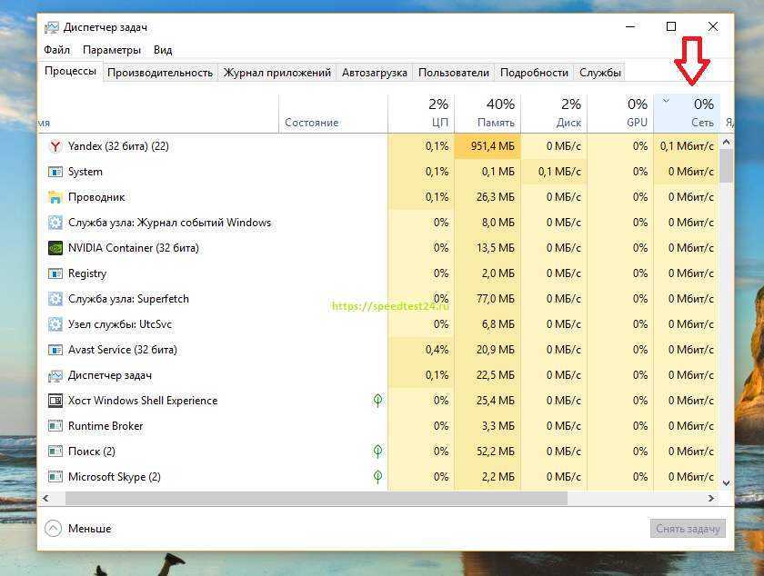 В общем, внимательно посмотрите этот параметр. Очень часто можно увидеть, как Служба обновления Виндовс или торрент клиент потребляют большое количество трафика, а Вы об этом и не догадываетесь. Естественно, в такой ситуации скорости интернета для Ваших потребностей может не хватать. И, конечно же, обращаться с претензиями к провайдеру не имеет смысла.