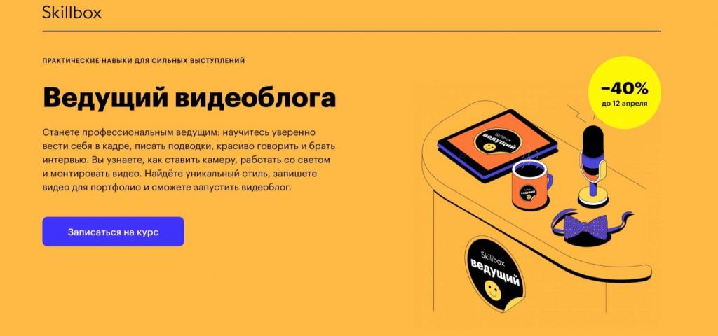 | Ведущий видеоблога | от 5 400 ₽/мес | Онлайн-уроки | 80 уроков | Skillbox |