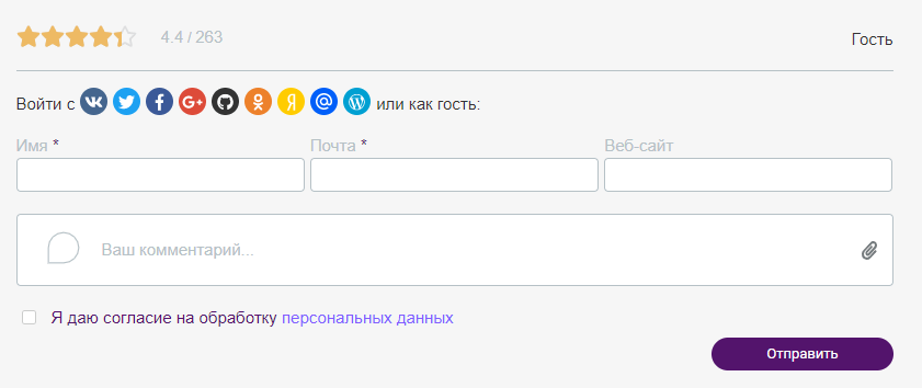 Более подробную информацию о HyperComments можно найти на официальном сайте. Там же будет раздел с тарифами.
