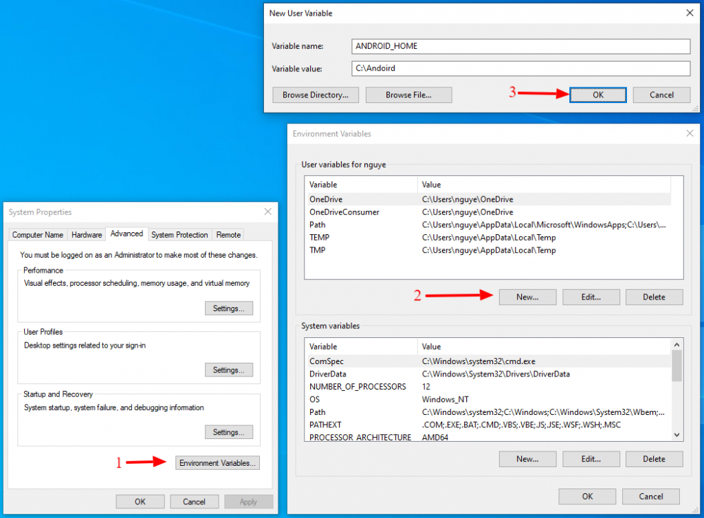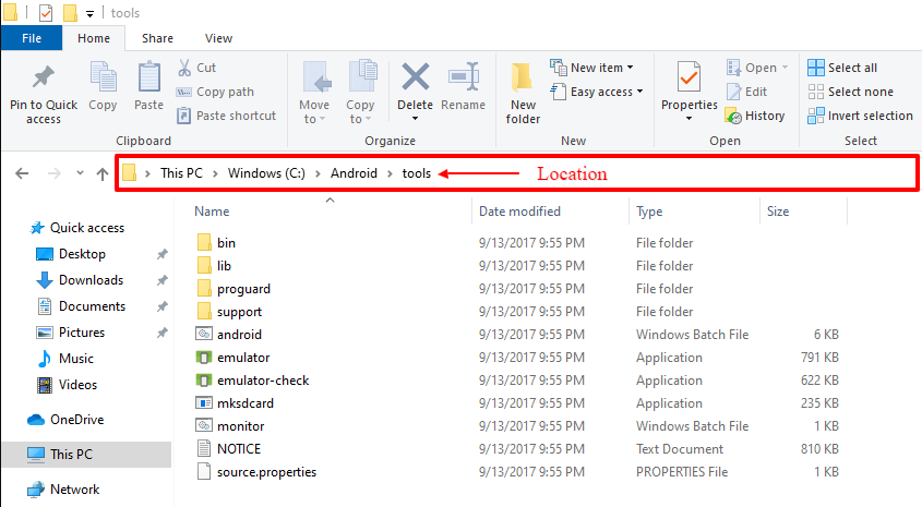 - Задайте для переменной среды местоположение вашей установки Android SDK