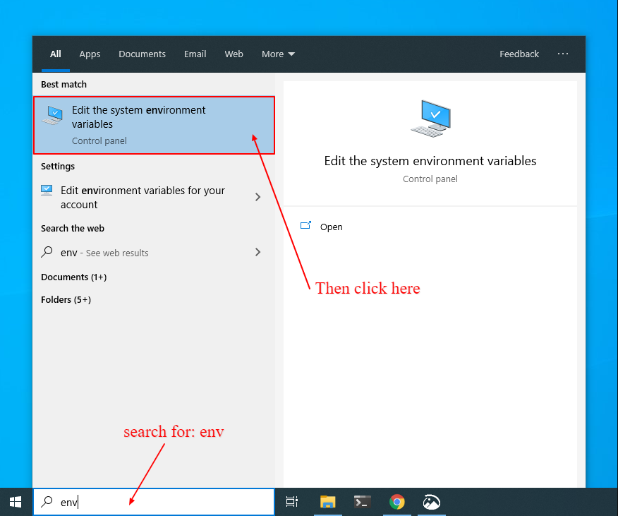 В строке поиска найдите переменные среды и выберите « Изменить системные переменные среды» в появившихся параметрах.