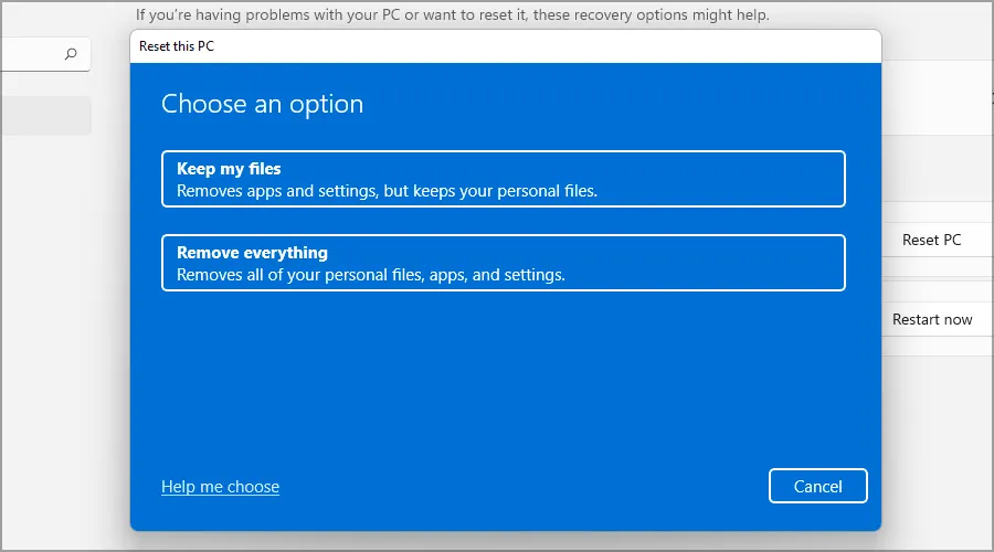 - Откроется окно действий, в котором можно выполнить некоторые из шагов, о которых я говорил ранее для решения проблемы с ошибкой CRITICAL PROCESS DIED.