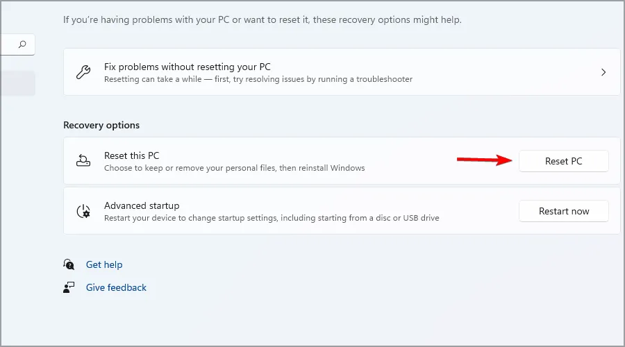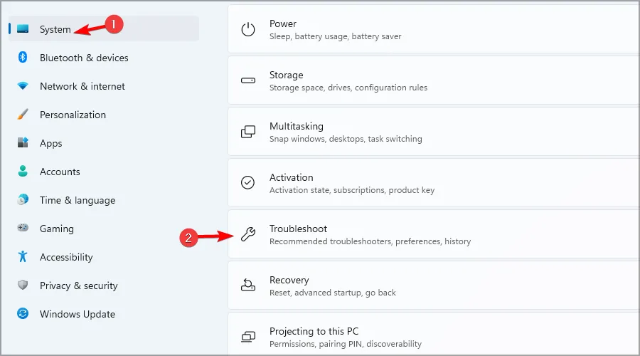 Перейдите к разделу «Устранение неполадок» на правой панели.