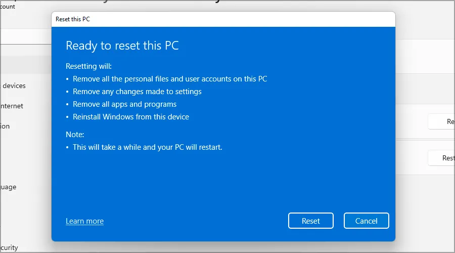 Выберите нужный тип переустановки. Мы использовали локальную переустановку.