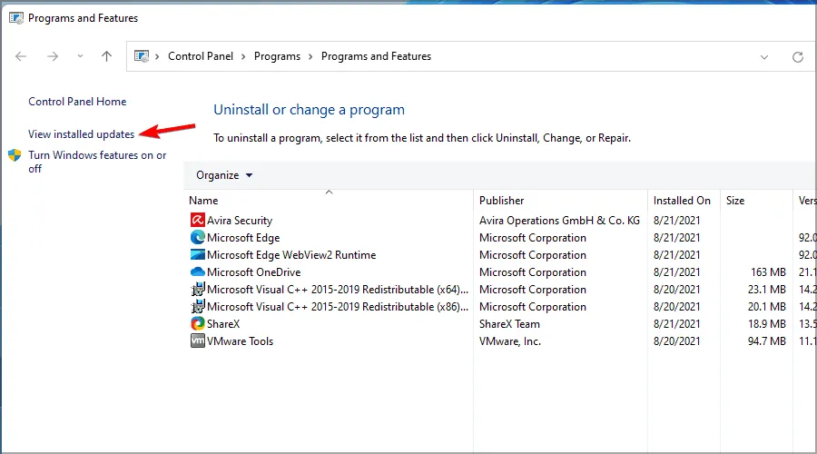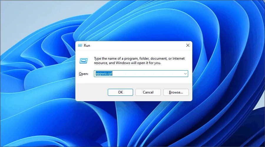 Нажмите Windows клавишу + R и введите appwiz.cpl. Нажмите «ОК».