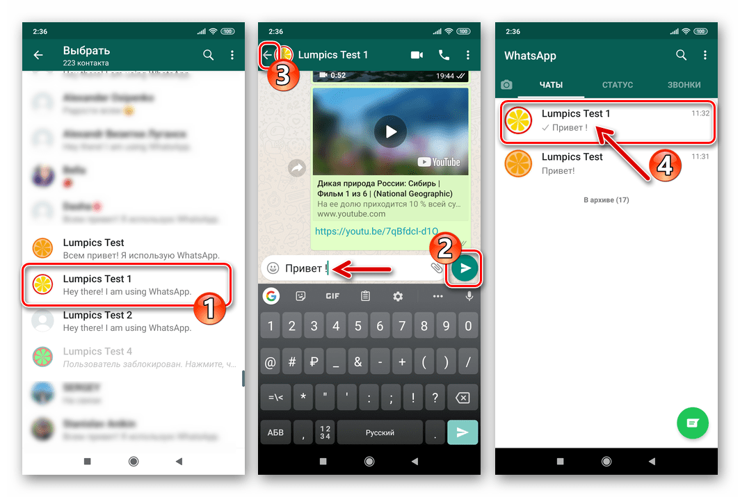 Если данные участника WhatsApp, переписка с которым была заархивирована, внесены в перечень «Контакты» мессенджера, продолжить обмен информацией станет возможным после выполнения следующих шагов.