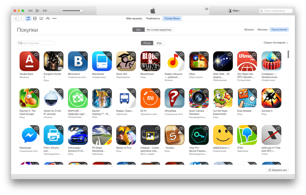 и зайти на свой аккаунт с помощью Apple ID. Далее нужно зайти в раздел Покупки