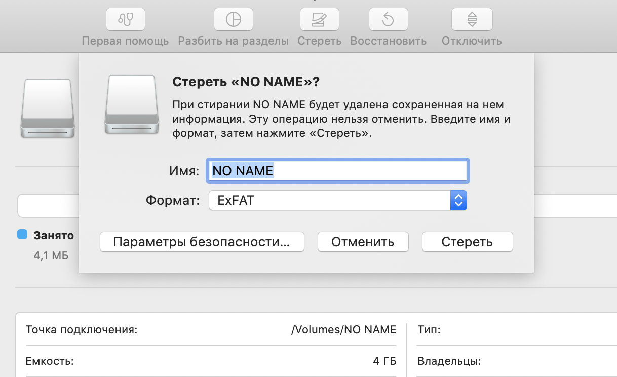 Форматирование диска или флешки в Mac OS