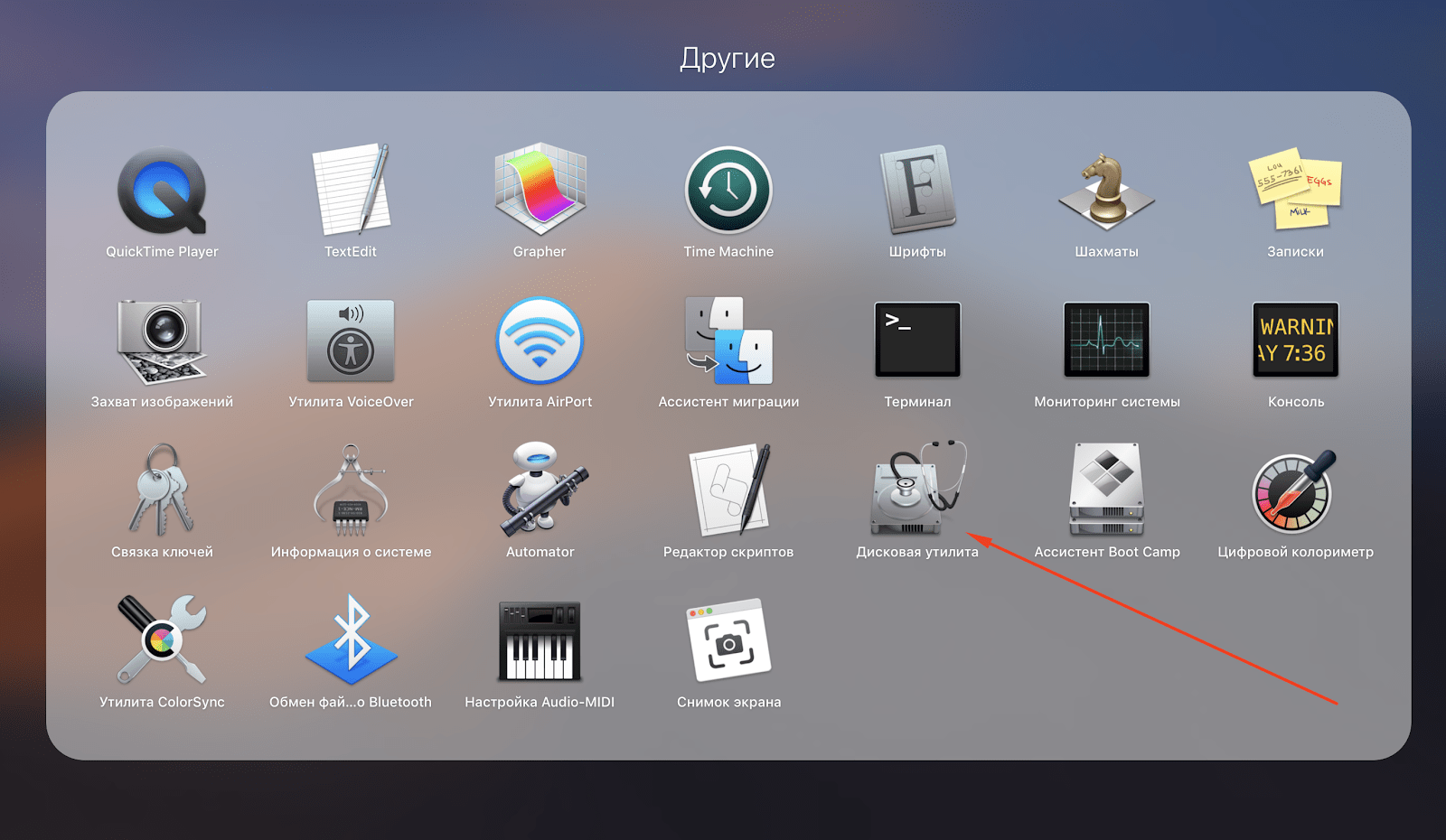 В открывшемся окне есть папка «Другие», где собственно и расположена дисковая утилита.