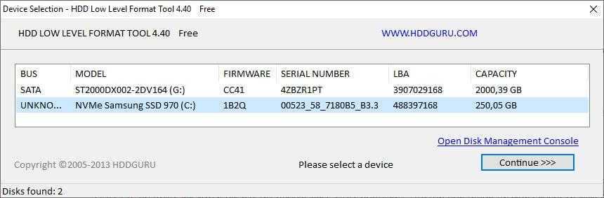 Способ 2: форматирование с помощью программы HDD Low Level Format Tool