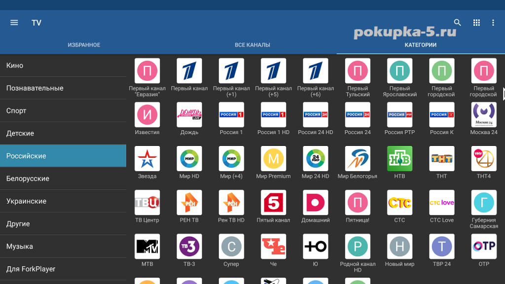 - Удобная сортировка каналов на плитки, списки либо сетки.