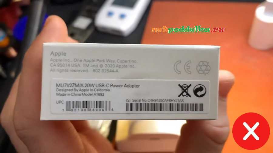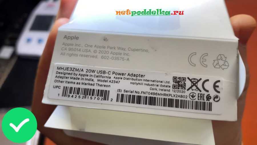 Еще один способ как отличить подделку зарядки Айфон ‒ посмотреть серийный номер. С Китая поступают огромные партии пали с серийником 5Т3387422. Поэтому при виде такого номера от покупки лучше отказаться.