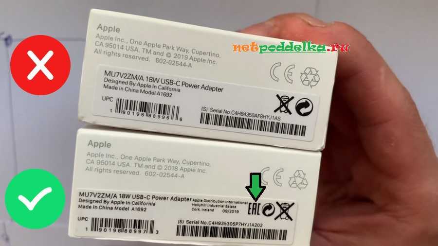 На упаковках нового типа обязательно присутствует QR-код. Его отсутствие говорит либо про поддельное происхождение зарядки, либо про устаревшую коробку.