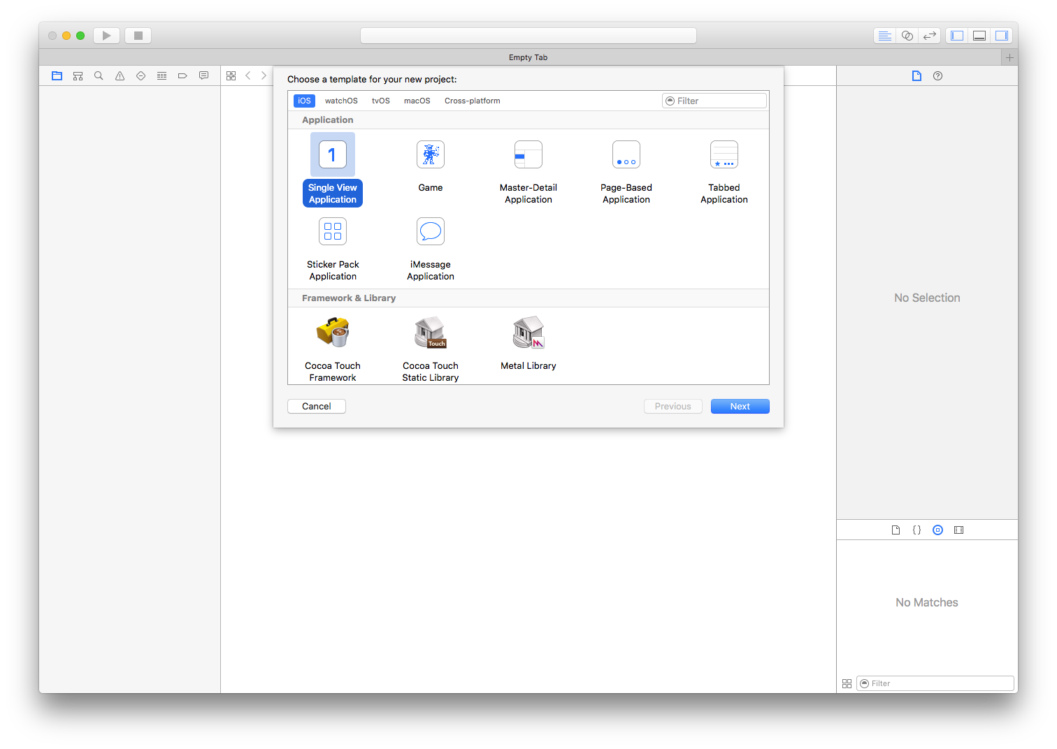 - Заготовка Single View Application предназначена для простого приложения с одним экраном. Заготовка включает компонент View Controller, который позволяет настроить вид приложения с помощью конструктора форм Interface Builder.