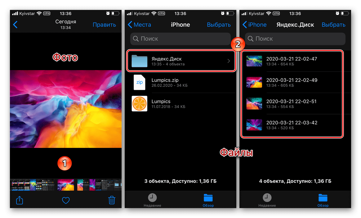Найти загруженные из Яндекс.Диска изображения и видеозаписи можно будет в стандартном приложении «Фото» или «Файлы», в зависимости от того, куда вы сами их сохранили.