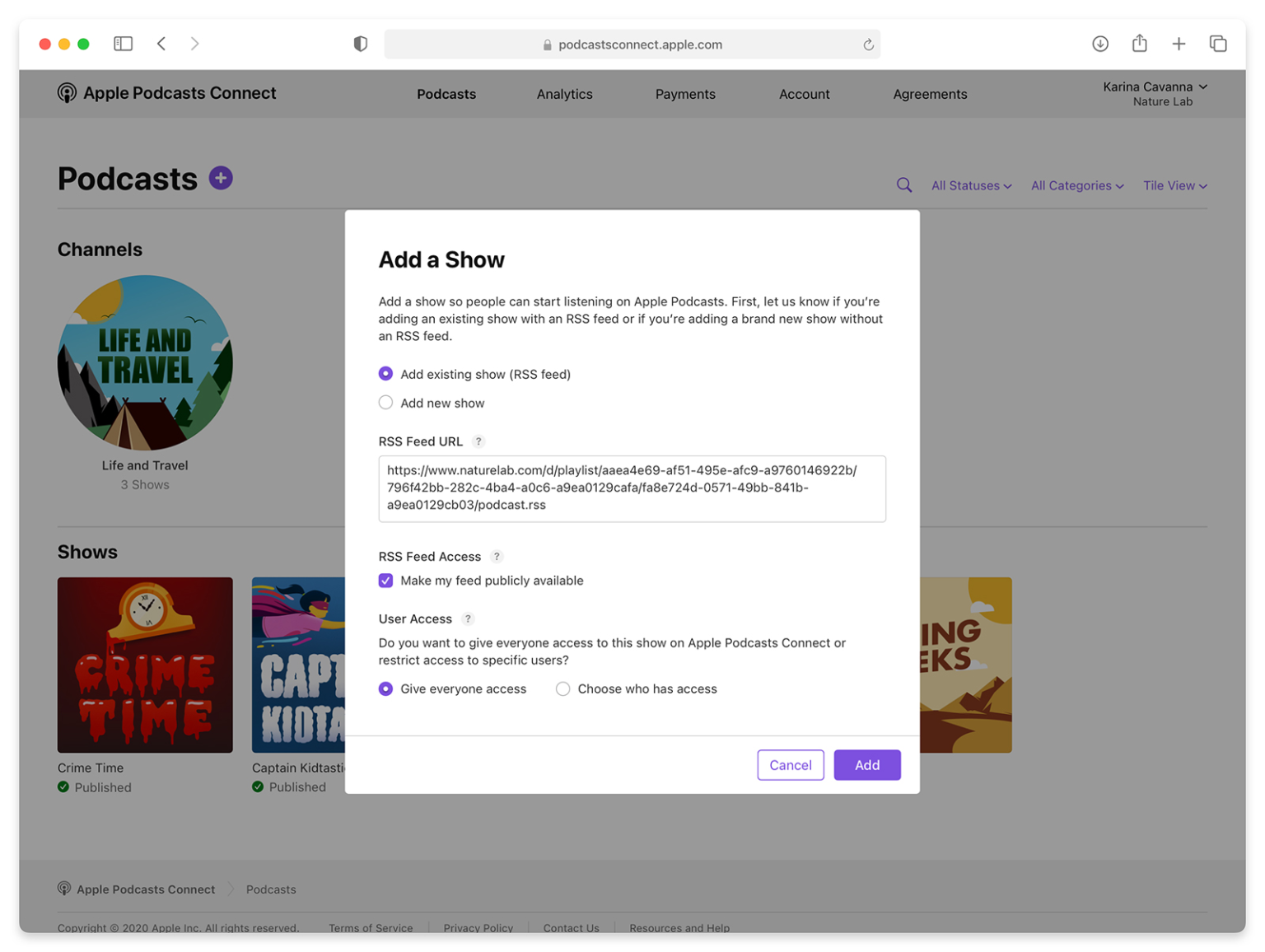 В первую очередь вам нужно будет добавить новое шоу с помощью RSS-ленты или выбрать один из существующих подкастов. Далее, вам нужно будет опубликовать выпуск, который будет доступен только платным подписчикам. И только потом загрузить эпизод для всех слушателей на ваш хостинг. Такой порядок обеспечит правильное отображение в приложении Apple Podcasts.