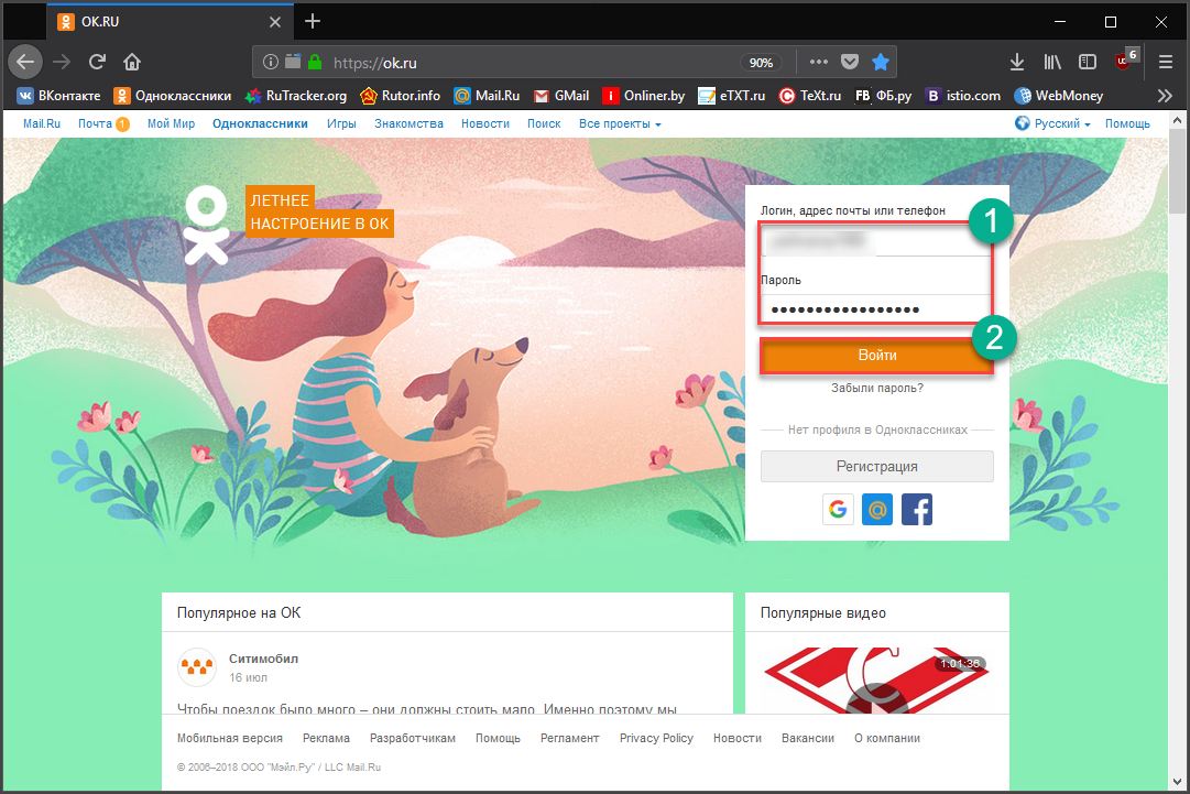Преимущество этого способа заключается в том, что пользователь уже находится на полноценной странице Одноклассников.