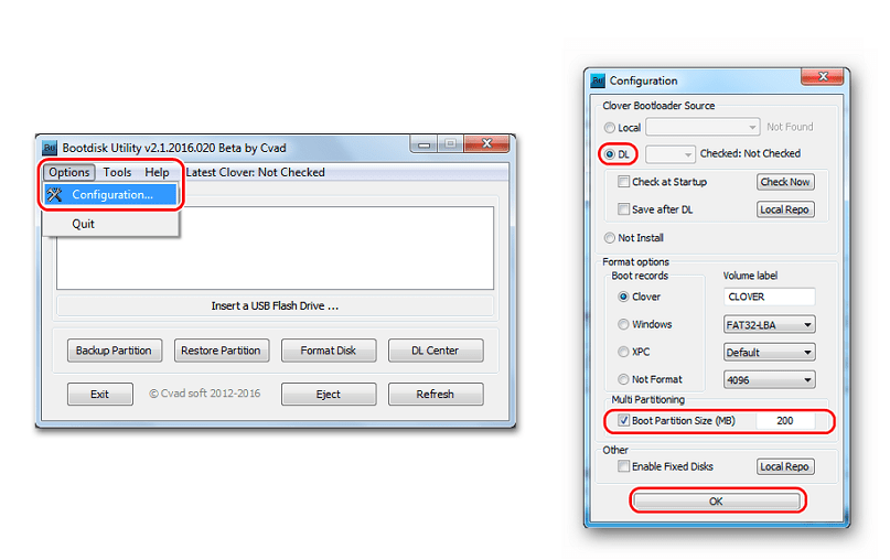Теперь мы делаем то же самое, только за два приёма — дополнительным шагом добавляем к образу загрузчик Clover: