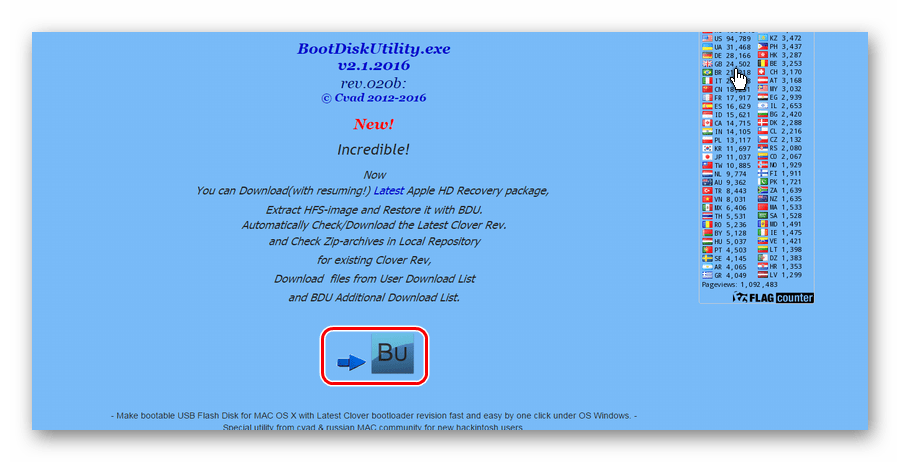 - Скачайте программу и запустите ее из архива. Для этого на сайте нажмите на кнопку с надписью «Bu». Не особо понятно, зачем разработчики решили сделать процесс загрузки именно таким.
