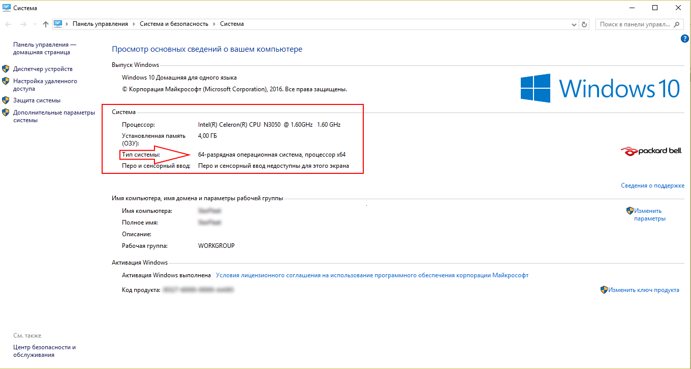 Если установлена Windows x64, значит и процессор используется такой же, если операционная система 32-разрядная – метод не подходит. Процессор x64 функционирует под управлением Windows x32, но обратная совместимость не поддерживается.
