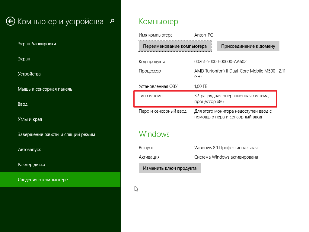 - Если сведения о разрядности не указаны, значит система 32-х битная, в ином случае будет написано 64-Bit Edition.