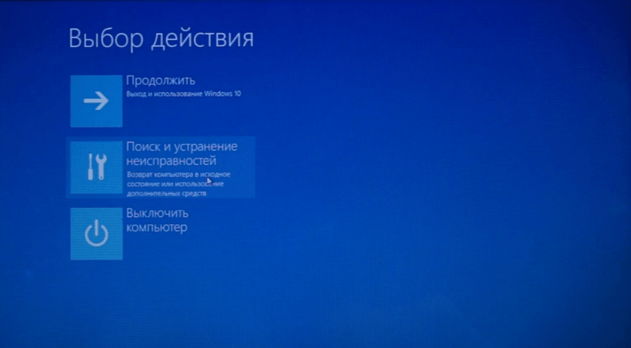 В результате, вы будете перенаправлены в окно «Выбор действия». Кликните на плитку «Поиск неисправностей».
