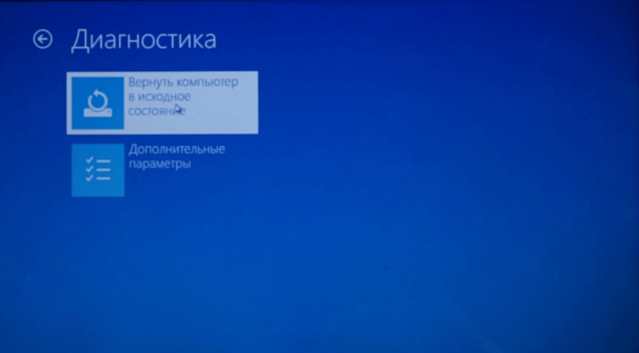В новом окне нажмите на «Диагностика». Выберите плитку «Вернуть в исходное состояние» и дождитесь завершения сброса.
