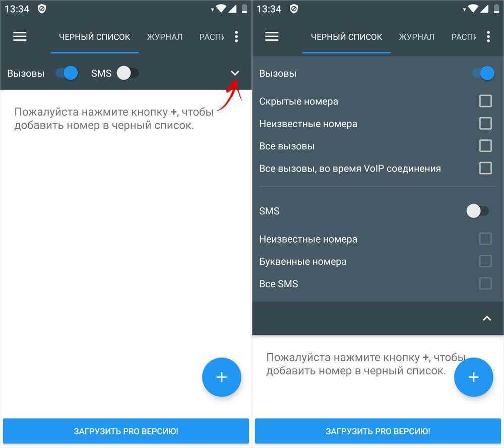 Рассмотрим принцип добавления в чёрный список на примере приложения «Call Blocker, SMS Блокатор».
