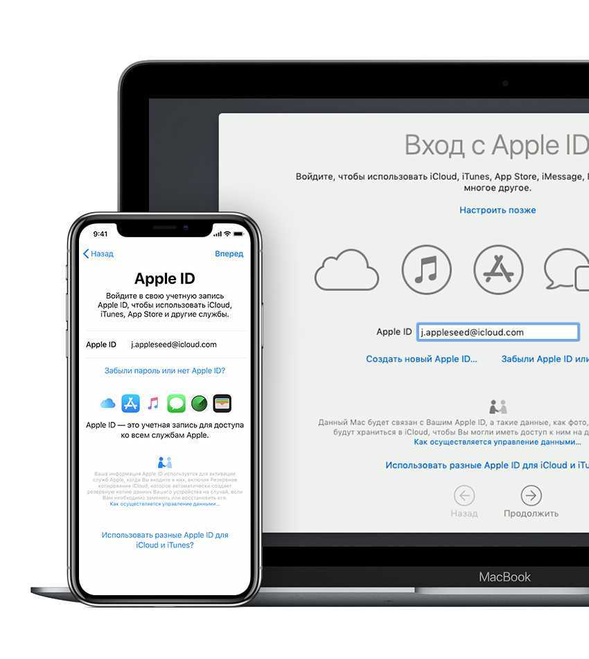 При включении и настройке нового iPhone, iPad, iPod touch или компьютера Mac отобразится сообщение с предложением выполнить вход с использованием идентификатора Apple ID. После выполнения входа все службы Apple на вашем устройстве будут настроены автоматически.