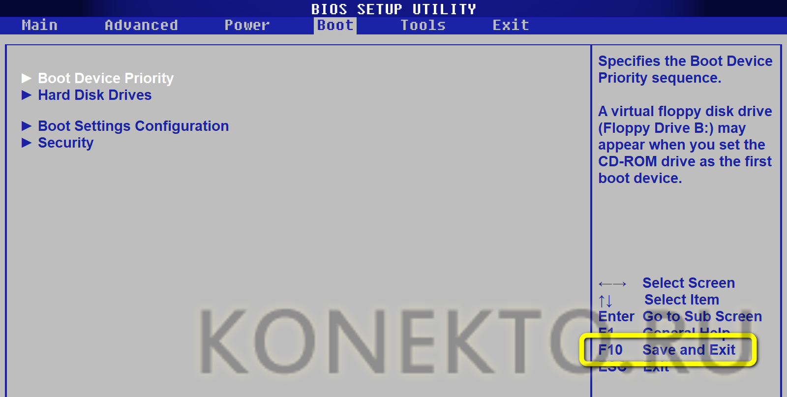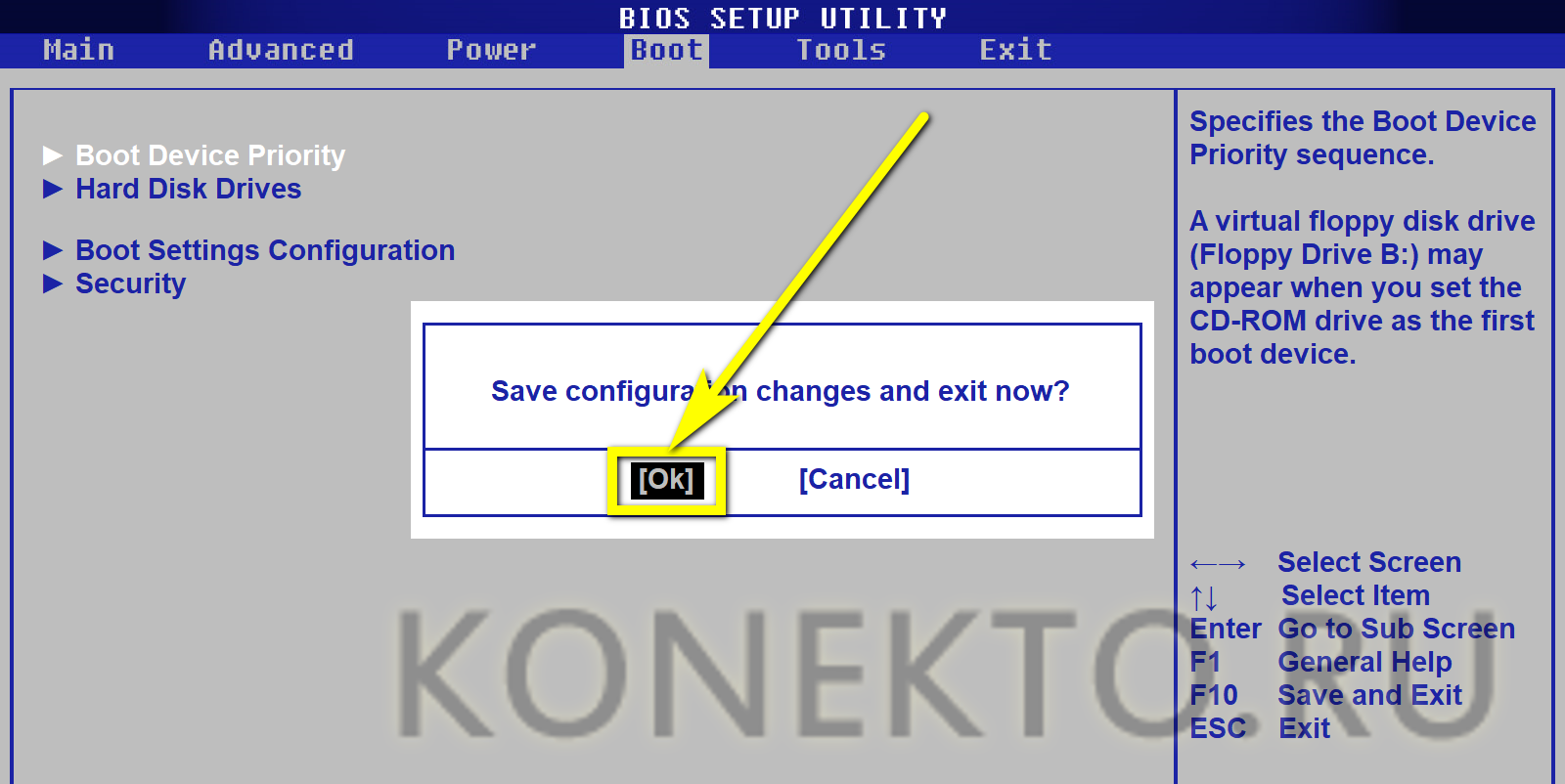 Сохранить изменения и выйти из БИОСа, воспользовавшись клавишей F10 — или другой, предлагаемой системой.