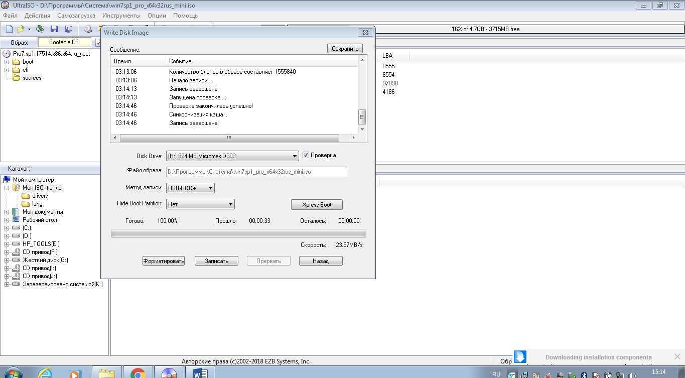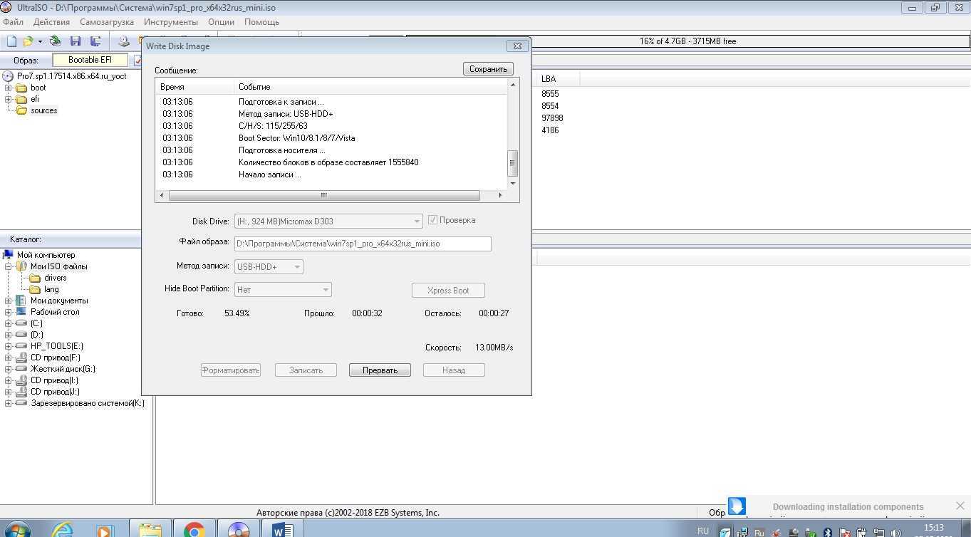 Правильная подготовка USB-накопителя для использования в качестве источника установки для Windows 7 с флешки или Windows 10 займёт от 15 до 30 минут в зависимости от скорости вашего компьютера и от того, какая версия операционки у вас есть в формате ISO.