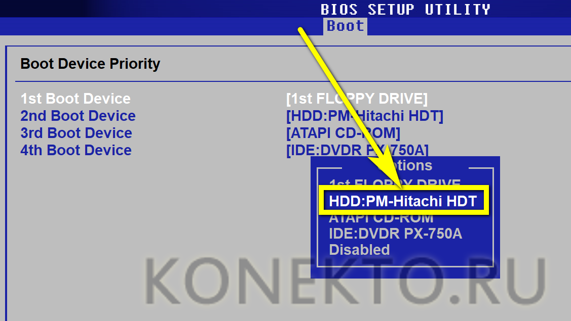 Hard Disk Boot Priority — переключаем его в положение Press Enter