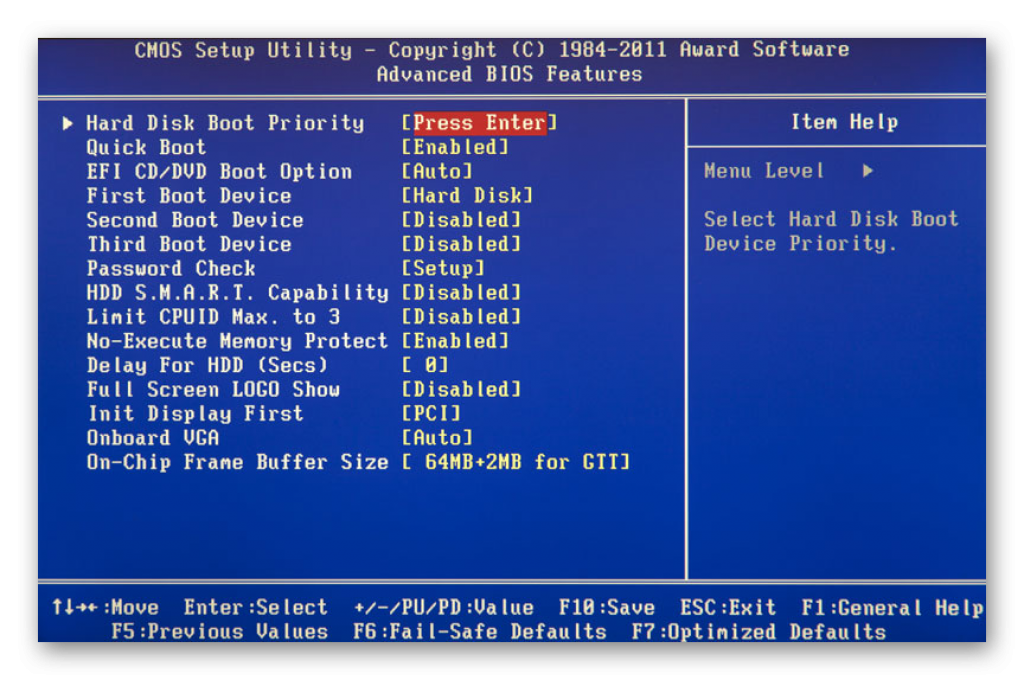 Здесь мы переключаемся в раздел Boot или Advancet BIOS Features.