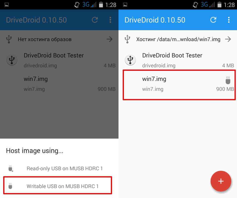 Потом нужно снова нажать на образ и выбрать вкладку «Writable USB on MUSB HDRC1». В итоге он будет смонтирован и на нем появится иконка USB-накопителя.