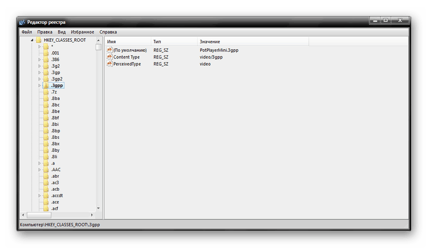 - HKEY_CLASSES_ROOT – в этом разделе записана информация о зарегистрированных файловых расширениях и ассоциированных с ними программах;