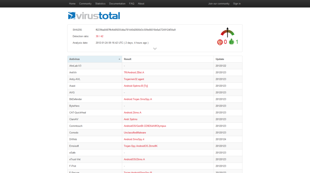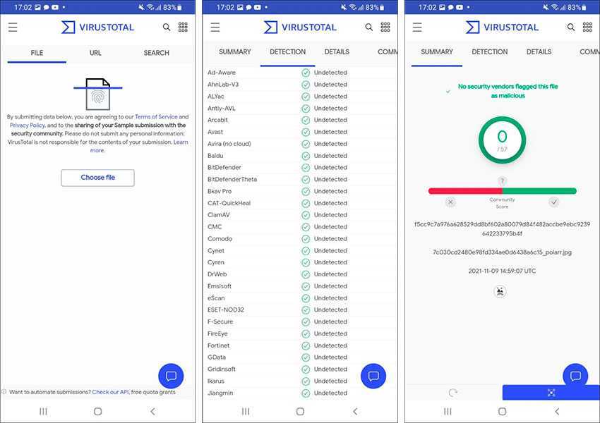 Если не хочется разбираться с системными настройками смартфона или что-то устанавливать, то можно воспользоваться специальными сервисами для проверки телефонов на вирусы в онлайн режиме. Отличным примером такого сервиса является сайт VirusTotal, позволяющий проверять конкретные файлы с использованием одновременно нескольких антивирусных баз данных.