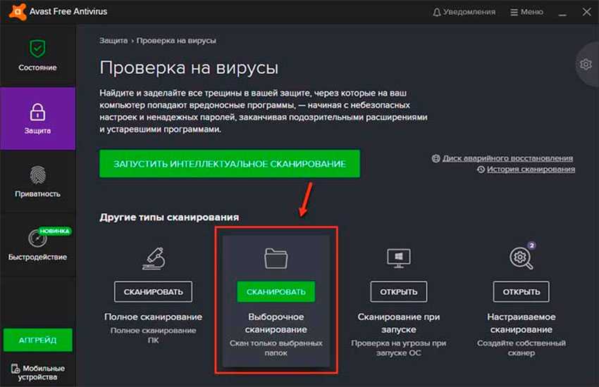 - Запустите антивирусную программу, установленную на ПК, и активируйте процесс сканирования;