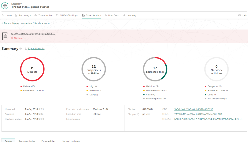 Портал Kaspersky Threat Intelligence. Онлайн-сервис, пришедший на смену закрытой в апреле 2020 года популярной программе Kaspersky VirusDesk, позволяет онлайн-сканировать подозрительные объекты и большие файлы размером до 256 МБ в общем режиме.