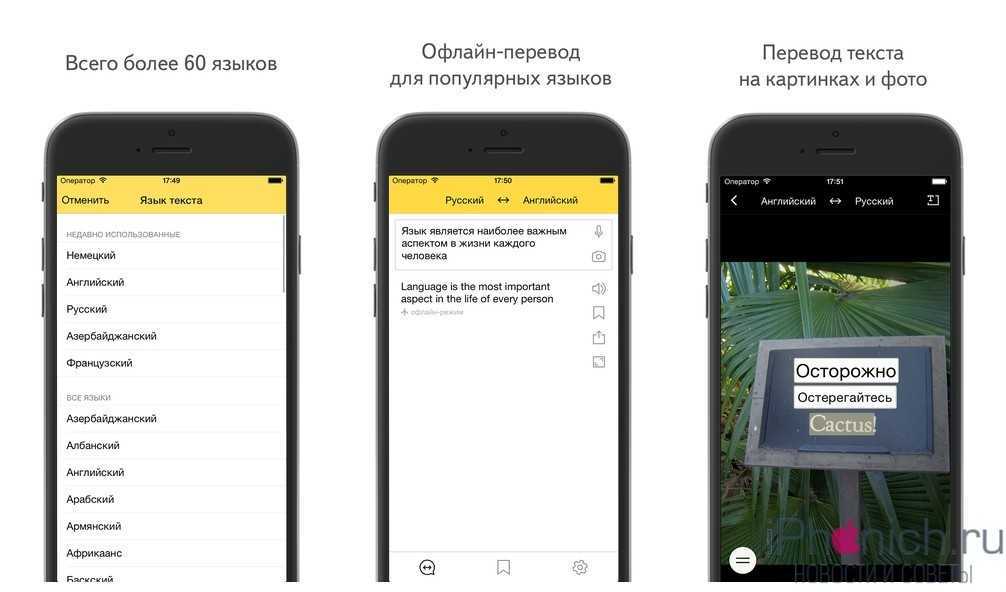 В App Store можно найти и другие приложения, которые можно использовать для перевода без подключения к интернету. Например, в Яндекс.Перевод бесплатно доступны оффлайн-словари. Большая словарная база сохраняется на телефон вместе с программой English-Russian dictionary. Так что возможностей для общения или изучения иностранных языков очень много. Всё, что для этого нужно — желание и свободное место в памяти смартфона.