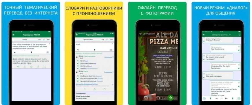 Первая позиция по достоинству уделяется известному переводчику различных языков, который называется Promt. Словарь характеризуется отличной работой без наличия интернет-соединения с iPhone, за счет чего его популярность не имеет пределов. Но все бы хорошо, если бы не взималась оплата за данное приложение. Имеются положительные особенности приложения:
