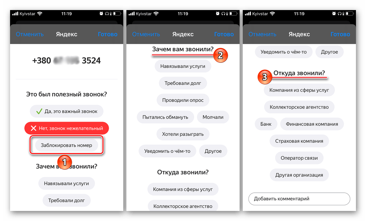 При выборе второго пункта появится возможность «Заблокировать номер» и, если вы общались со звонящим, предоставить дополнительную информацию, указав, зачем вам звонили и откуда, а также, если есть такое желание, «Добавить комментарий».