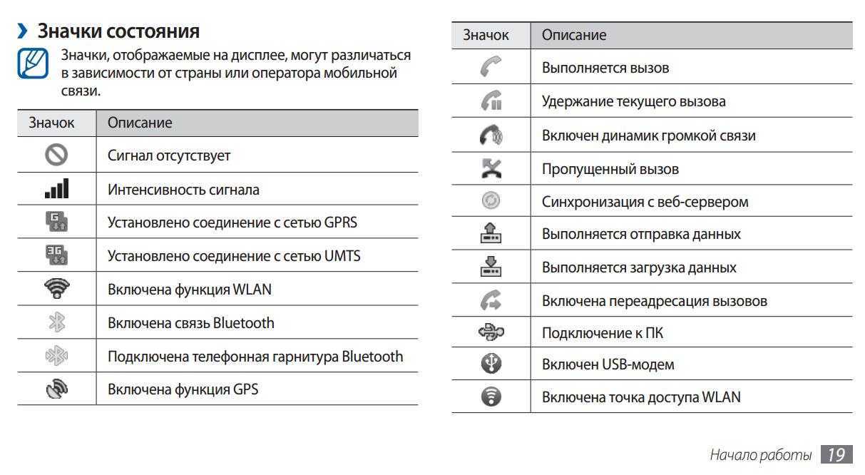 Более полный перечень значков к конкретно вашей модели телефона можно найти в инструкции, которая шла в комплекте с устройством. Если вы ее потеряли, на сайте производителя всегда хранится ее электронная версия.