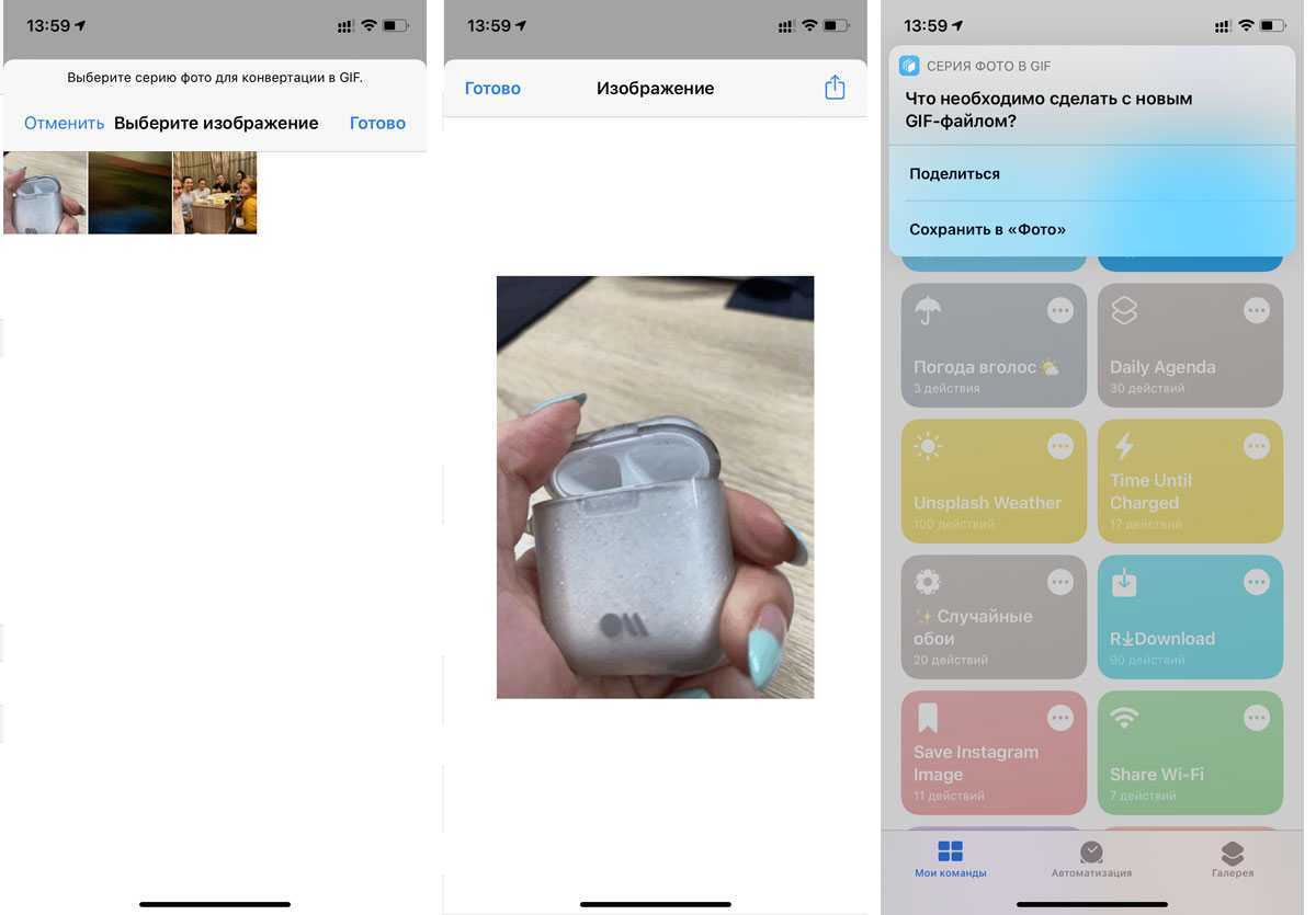 GIF на iPhone можно сделать из серии фото с помощью специальной Команды.