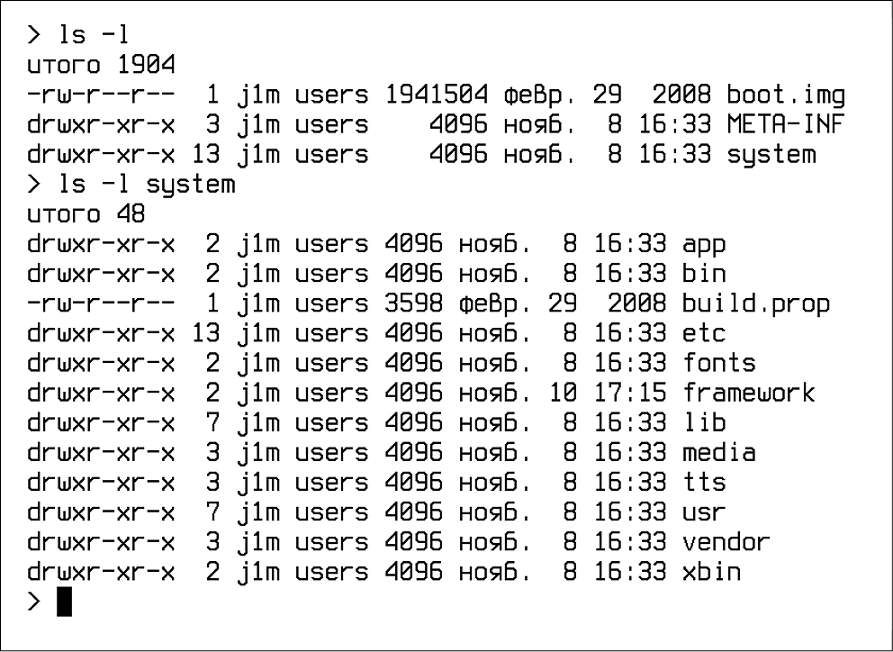 Теперь для запуска файлового менеджера на устройстве достаточно открыть терминал и набрать mc. Другие приложения могут распространяться в zip-архивах для прошивки с помощью ClockworkMod Recovery. Поместить их в свой мод еще проще, для этого достаточно перейти в корень прошивки (в данном случае ~/rom) и распаковать архив с помощью unzip.